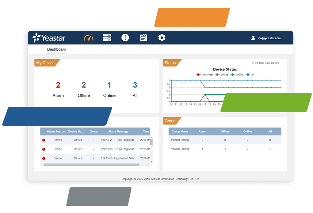 תיהנו מפלטפורמה מאובטחת ביותר לניטור וניהול מרחוק ומרכזי של מערכות המרכזייה שלכם. בין אם אתם משתמשי קצה של מערכת הטלפון או מפיצים של IT, Yeastar Remote Management כאן כדי לשחרר אתכם מכאבי ראש טכניים ולהפחית את עלויות ה-IT והתחזוקה.